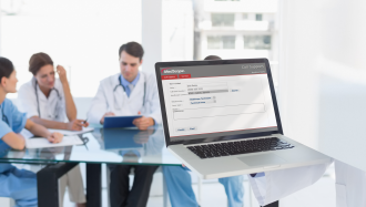 A content management system for clinical and administrative staff in hospitals to securely access, share, and submit information.