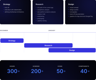 Given this schedule, for the first development stage, we agreed on an MVP solution with the most-wanted functionality: digital assets exchange.